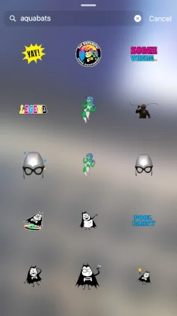 Dress up your Instagram stories and snaps with Aquabats stickers! Just take a photo using Instagram or Snapchat’s camera, tap the stickers icon, then search within the GIFs for “Aquabats”. You can dress yourself up as an Aquabat and even put a dancing Martian Girl from Planet V on your shoulder!